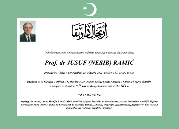 Prof. dr. Jusuf Ramić, redovni profesor u mirovini na Fakultetu islamskih nauka u Sarajevu, preselio…