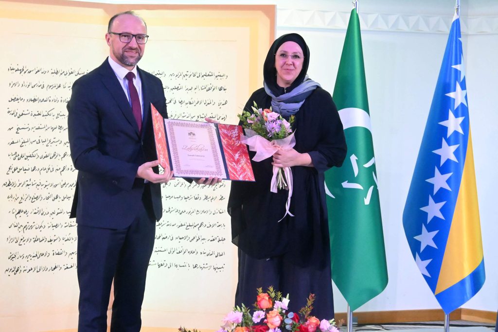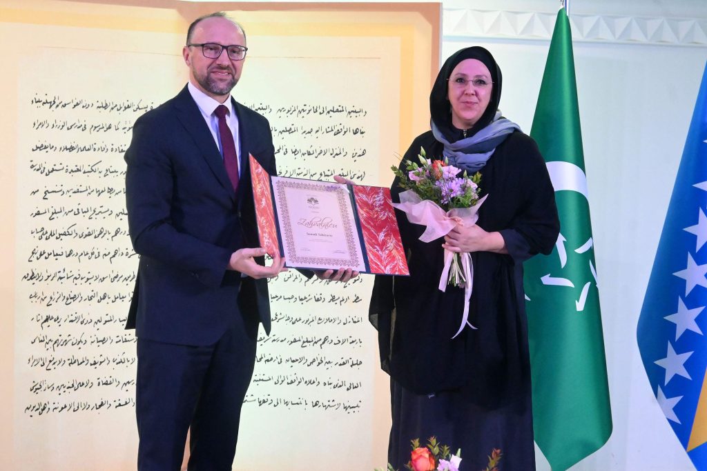Posebno priznanje za medijski doprinos radu Biblioteke uručeno je Islamskim informativnim novimama Preporod, koje je preuzela glavna i odgovorna urednica Senada Tahirović.