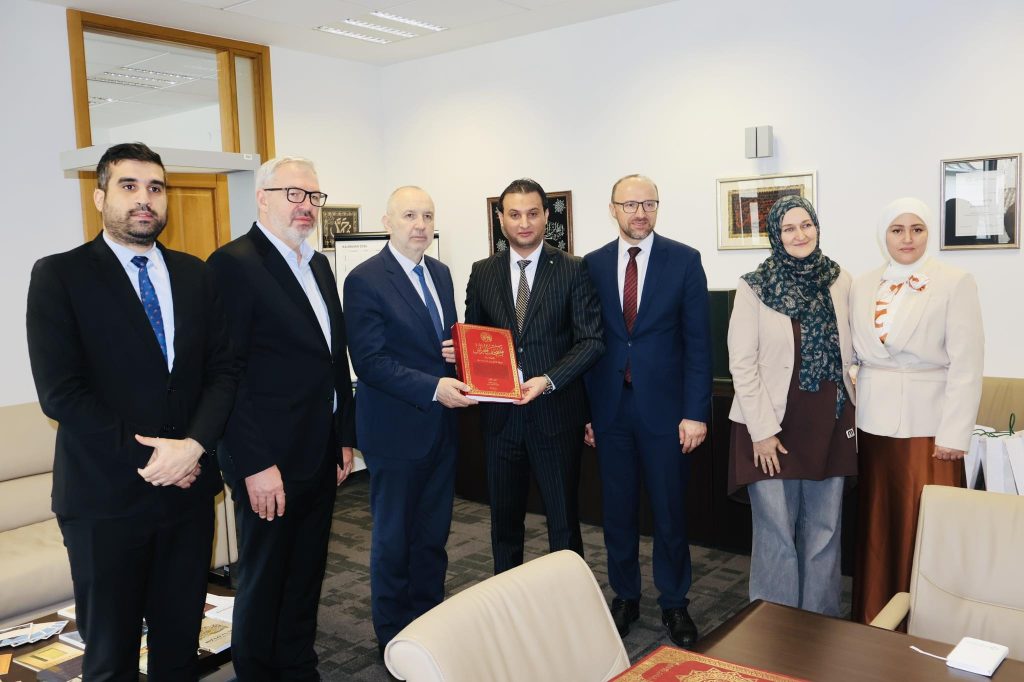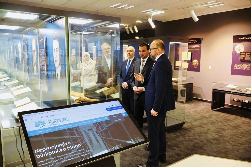 Gazi Husrev-begovu biblioteku u Sarajevu, u srijedu 18. marta 2026. godine, posjetila je delegacija Ambasade Demokratske Narodne Republike Alžir, koju je predvodio Nj. E. ambasador gospodin Mohammed Meraimi. Ambasador je u posjetu stigao zajedno s članovima svoje delegacije, saradnicima za međunarodnu saradnju pri Ambasadi, gospođom Amel Sni i gospodinom Oussamom Yahouni, što je dodatno naglasilo ozbiljnost i svečanost ove posjete.