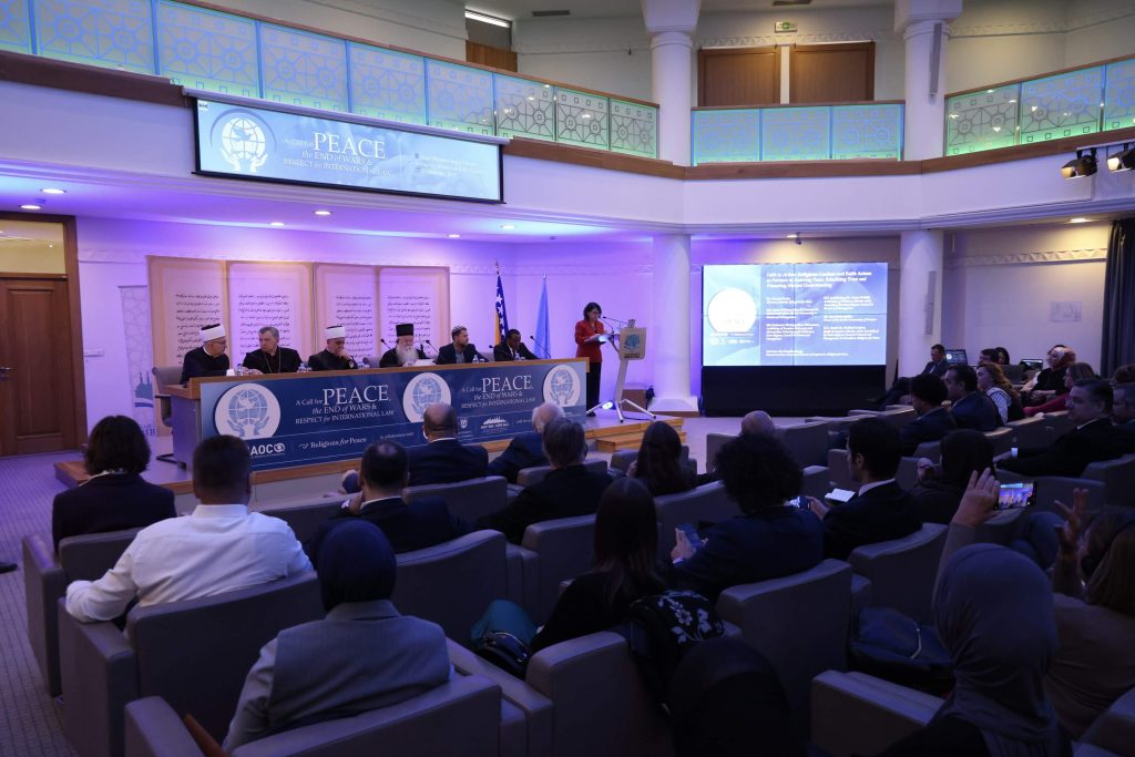 Konferenciju “Poziv na mir, okončanje ratova i poštivanje međunarodnog prava” organizuju Savez civilizacija Ujedinjenih nacija (UNAOC) i Religije za mir (RfP), u saradnji s Ministarstvom vanjskih poslova Bosne i Hercegovine, Gradom Sarajevo i Međureligijskim vijećem u BiH, uz podršku Ureda rezidentne koordinatorice UN-a u BiH.