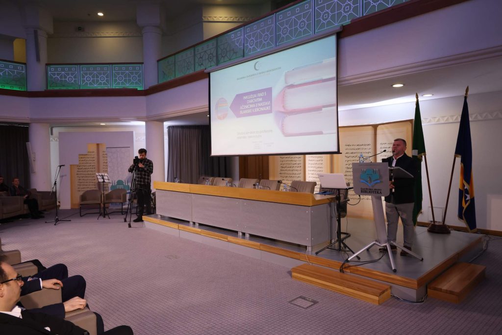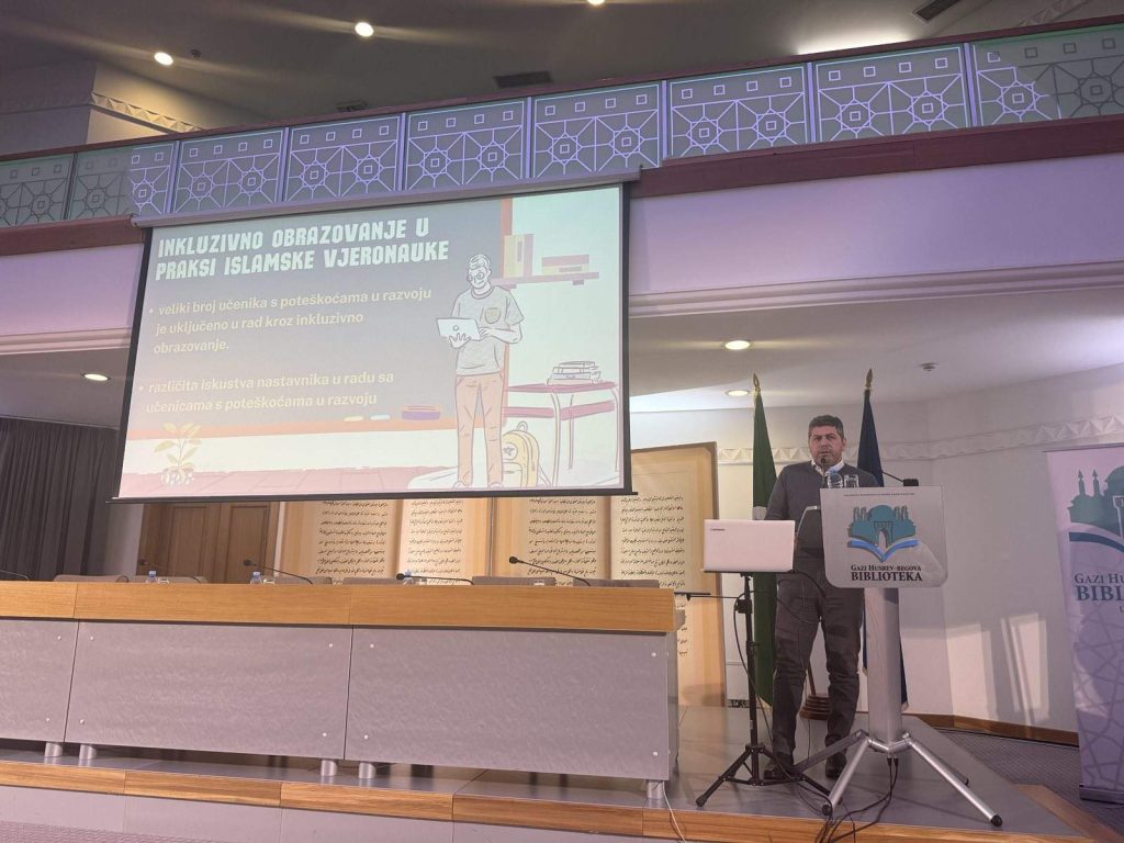 O primjeni inkluzivnog obrazovanja u nastavi islamske vjeronauke u srednjoj školi govorio je prof. Muamer Imamović, profesor islamske vjeronauke u Srednjoj školi za okoliš, drvni i dizajn u Sarajevu, koji je temu predstavio kroz praktične primjere.