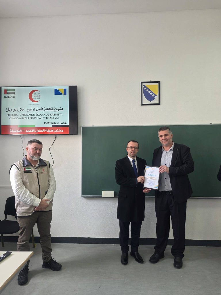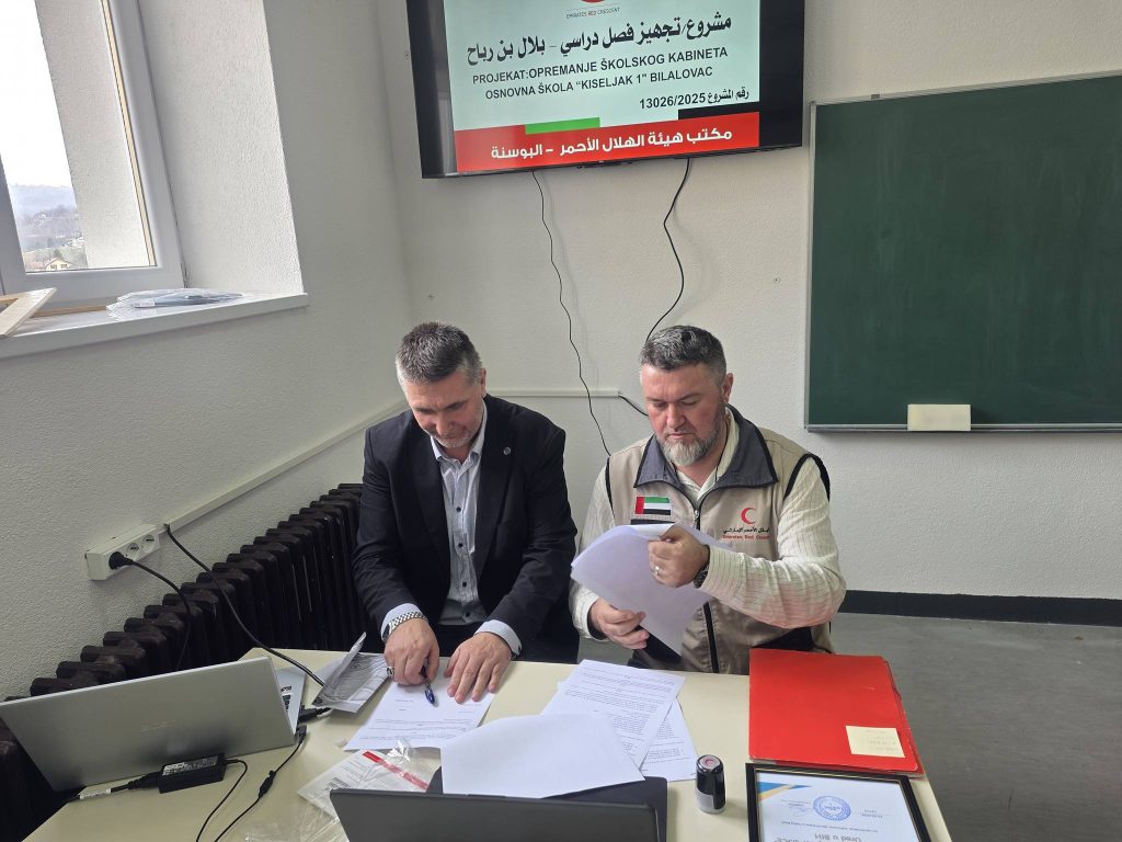 JU Osnovna škola „Kiseljak 1“ u Bilalovcu od danas je obogaćena značajnom materijalnom donacijom Humanitarne organizacije Red Crescent (Crveni polumjesec) Society for U.A.E – Ured u Bosni i Hercegovini, kojom je u potpunosti opremljen kabinet za izvođenje nastave islamske vjeronauke.